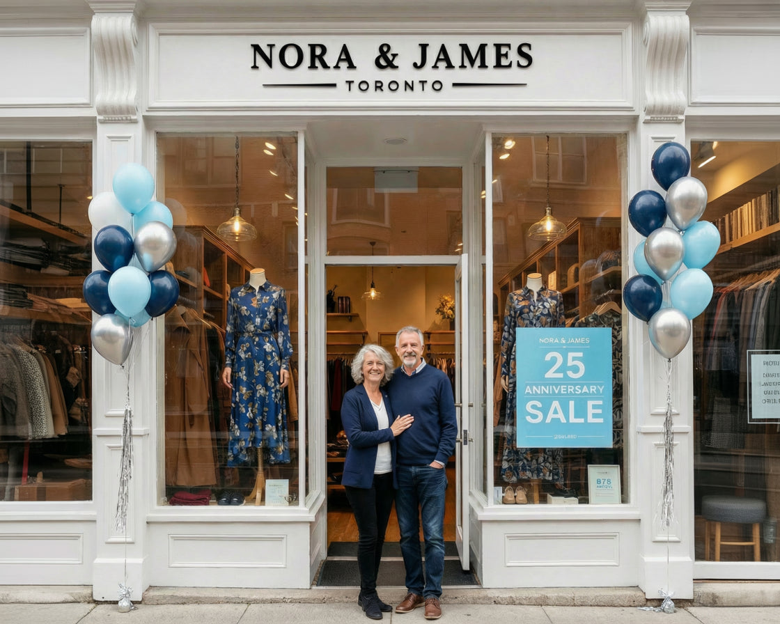This year marks 25 years of Nora & James – 25 years of style, laughter, and connection with customers who have become like family. As a heartfelt thank you, we're offering exclusive Anniversary Sale discounts – up to 75% off!